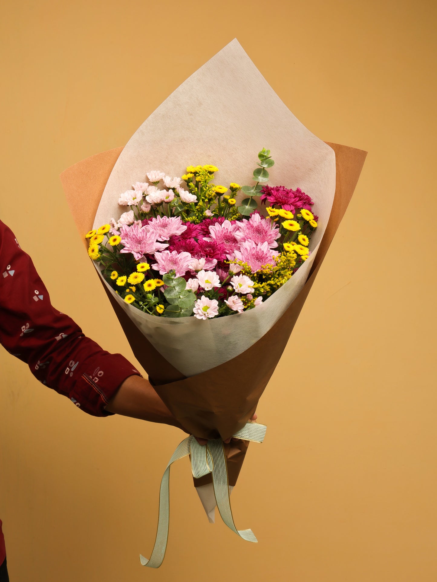 She was your first home, first hug, and first love. This bouquet captures that feeling with gentle shades of purple and pink chrysanthemums, touched with light pink Xanthines. It’s tender, timeless, and made just for her.