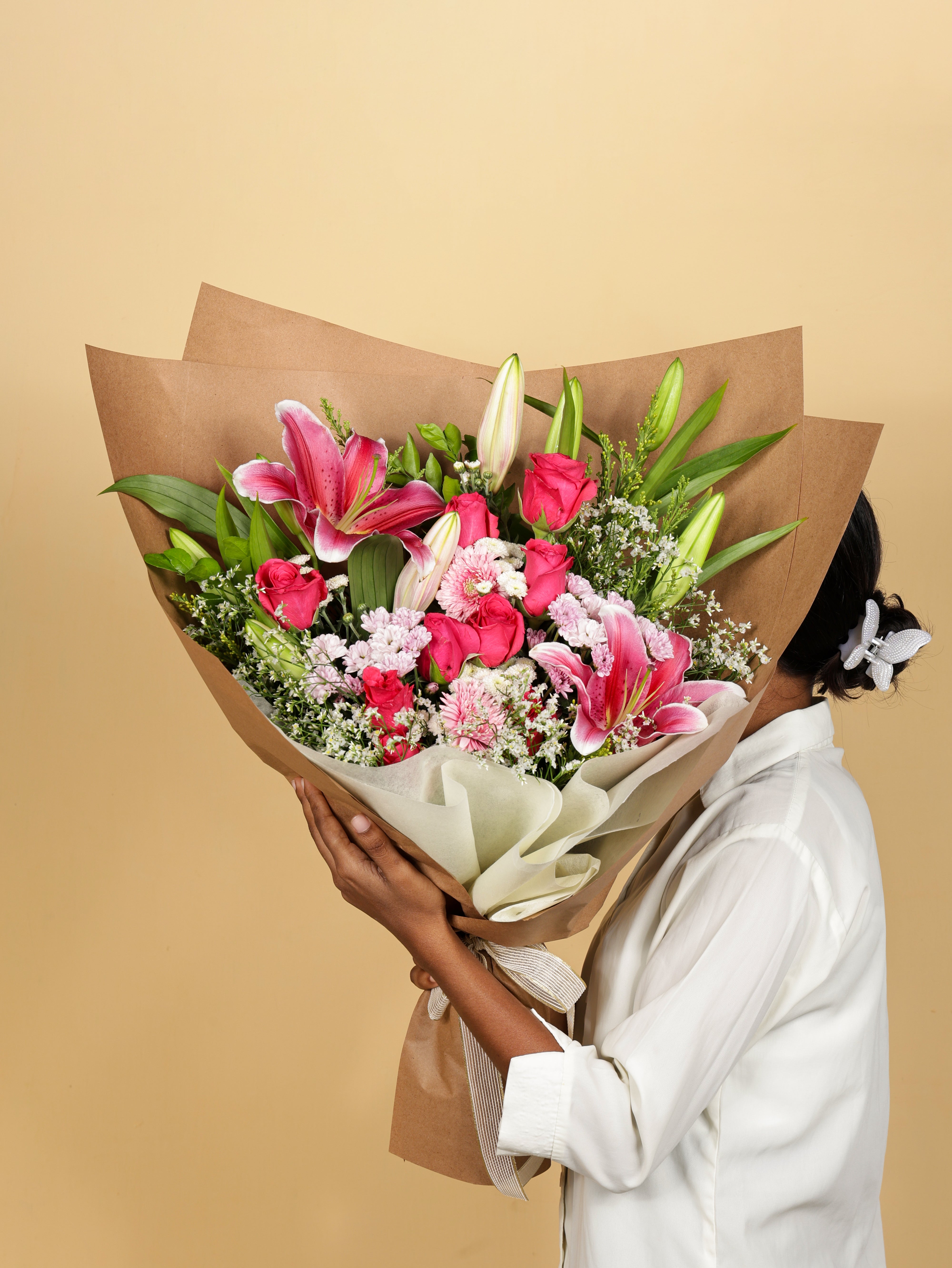 A bouquet that captures the charm of tiny, everyday gestures that mean the world.Flower List - Lilies, Roses, Gerbera, Santini, Limonium, Kamini Stem Count - Approx....Regular price Rs. 1,689.00Sale price Rs. 1,689.00 Regular priceUnit price perRs. 1,899.00 -