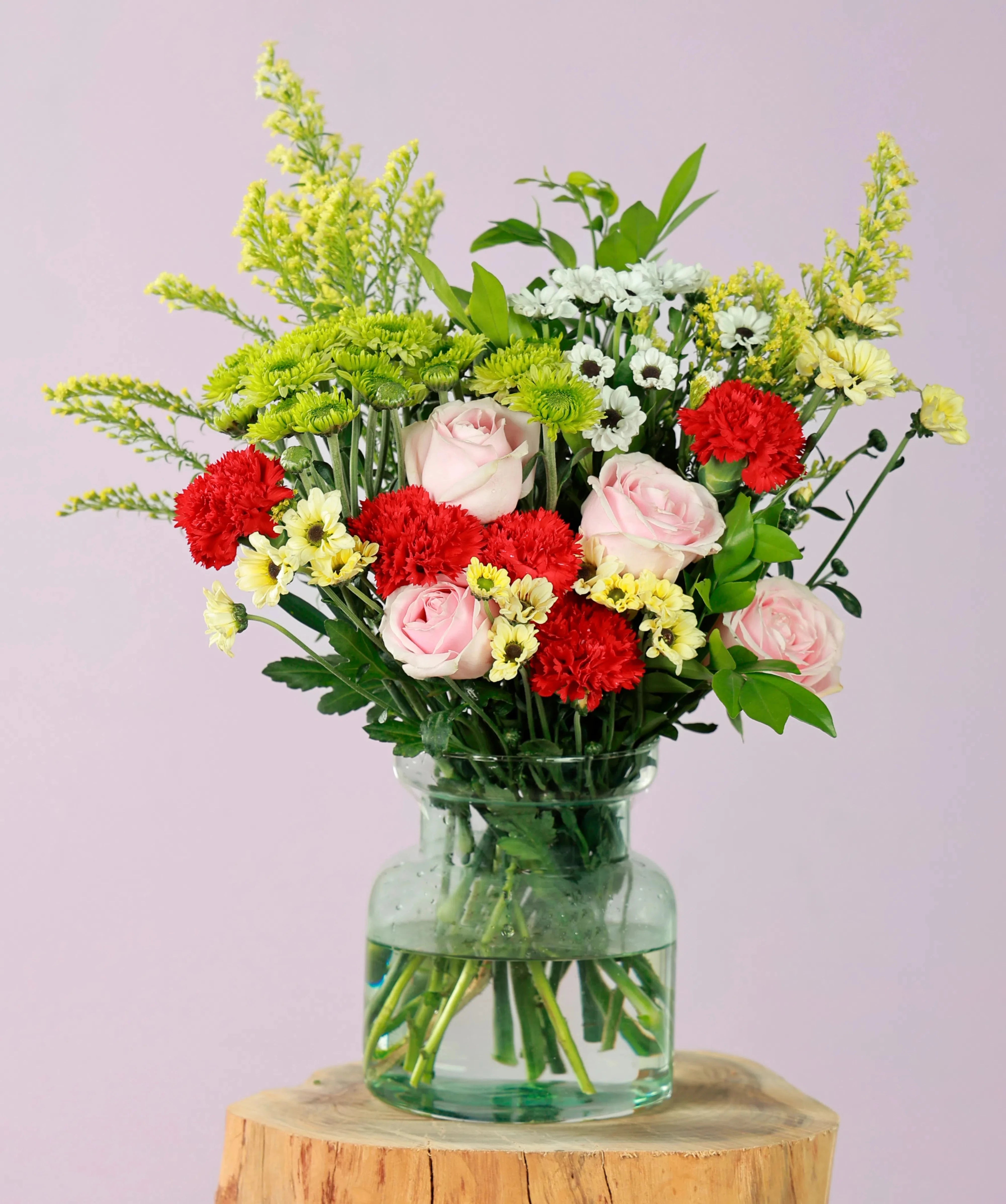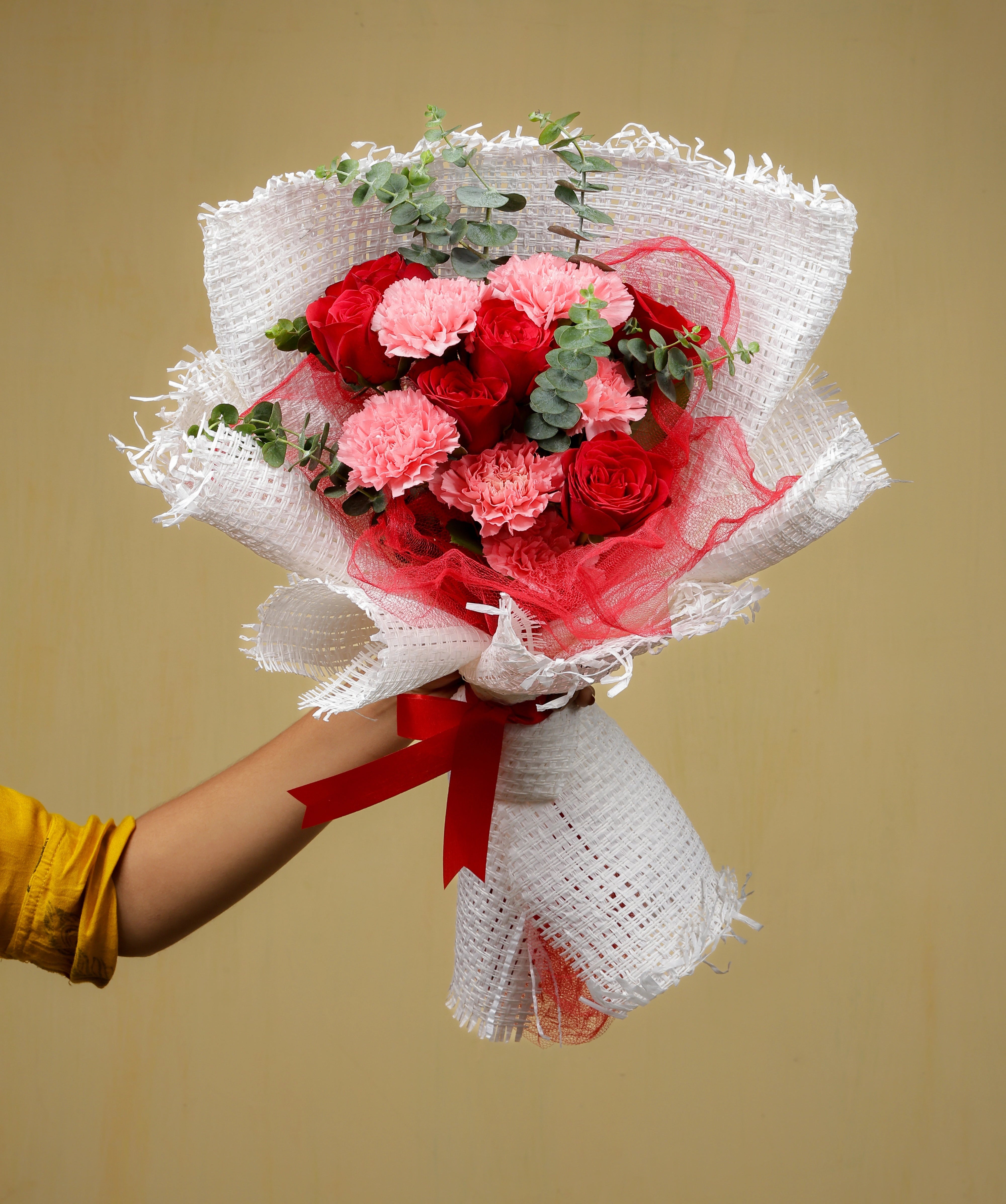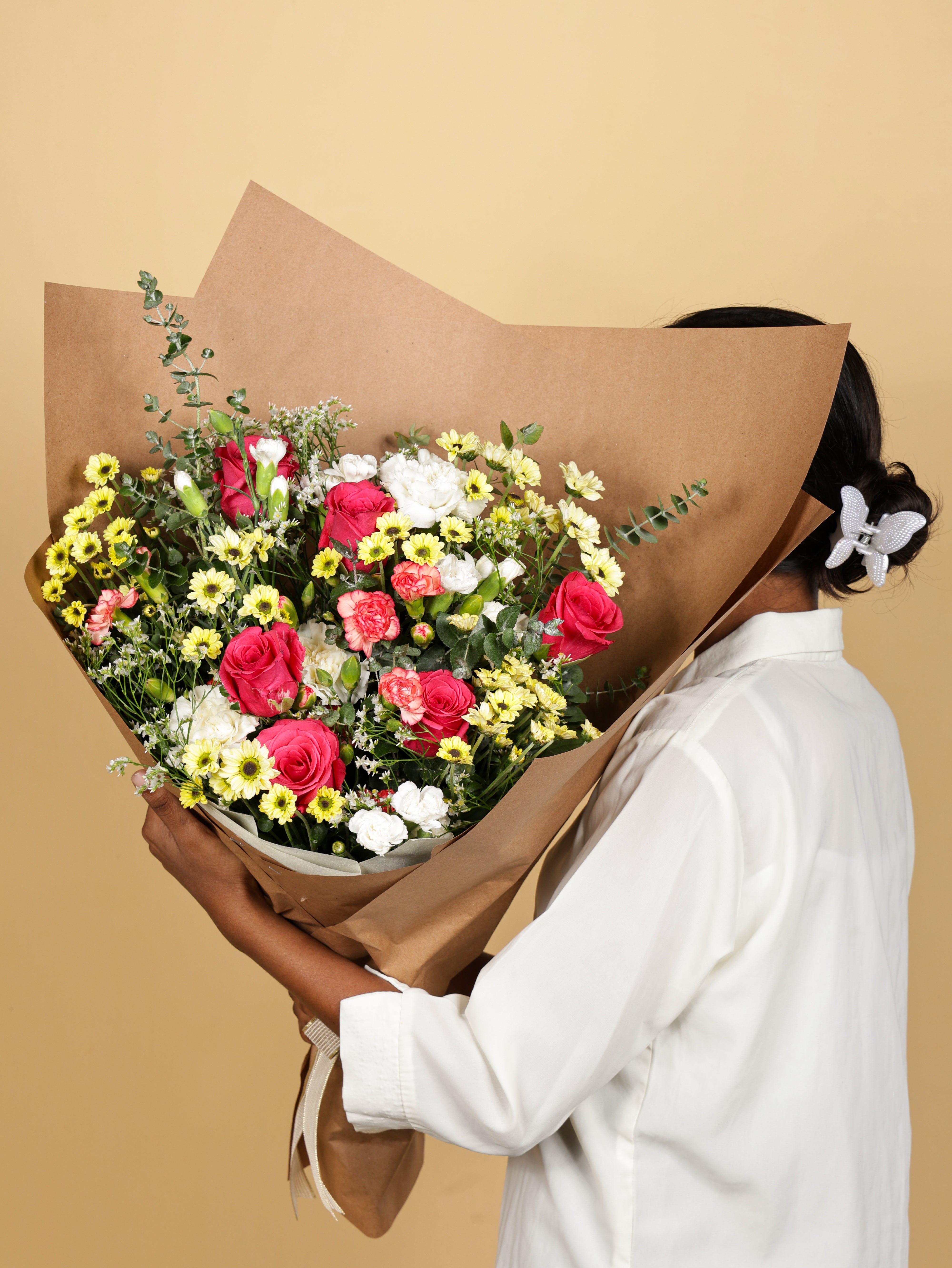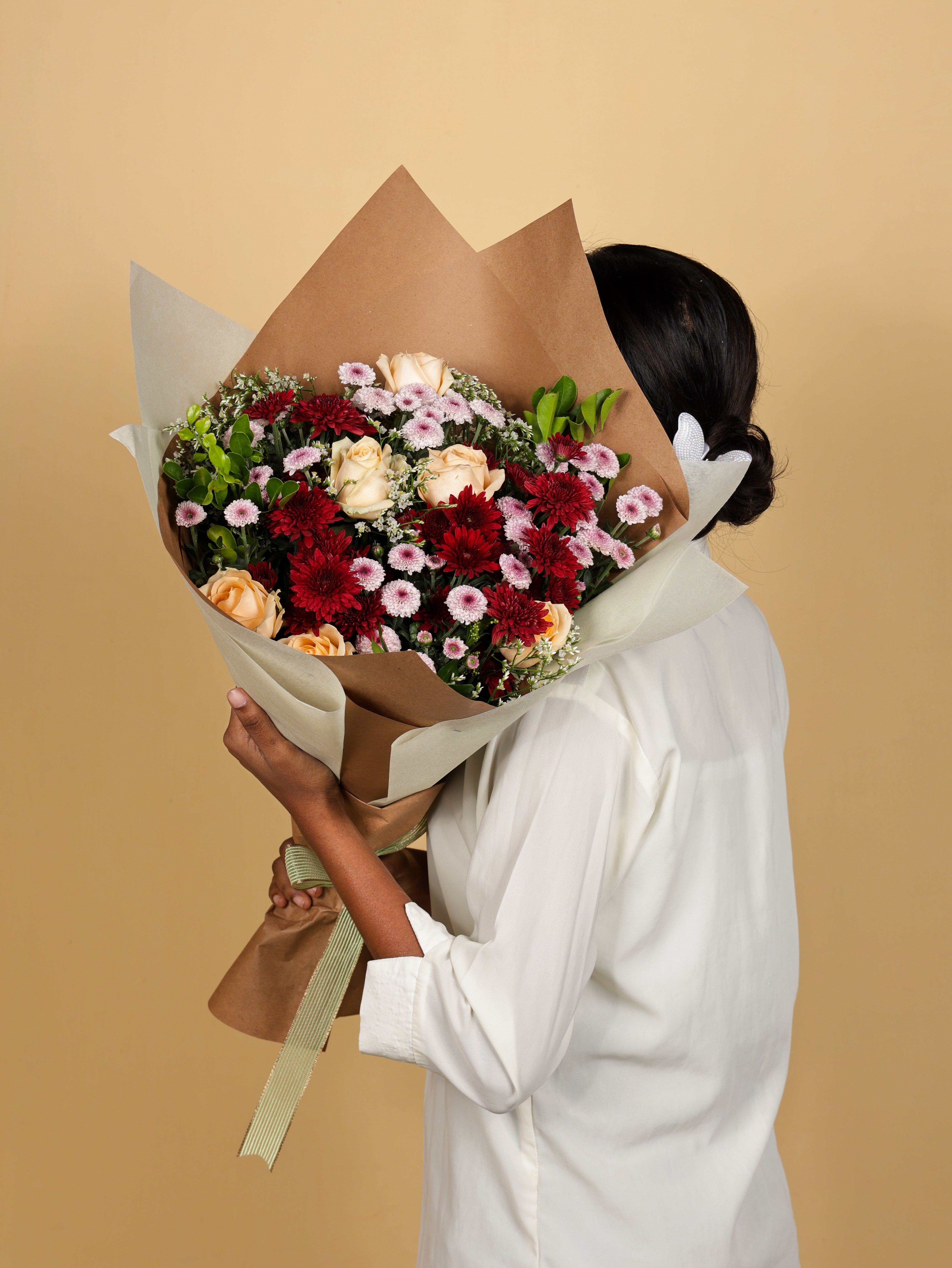 Elegant and minimal, this bouquet is for the calm souls who bring light without noise.Flower List - Roses, Santini, Chrysanthemum, Spray Carnation, Eucalyptus, Limonium Stem Count...Regular price Rs. 1,299.00Sale price Rs. 1,299.00 Regular priceUnit price perRs. 1,549.00 -