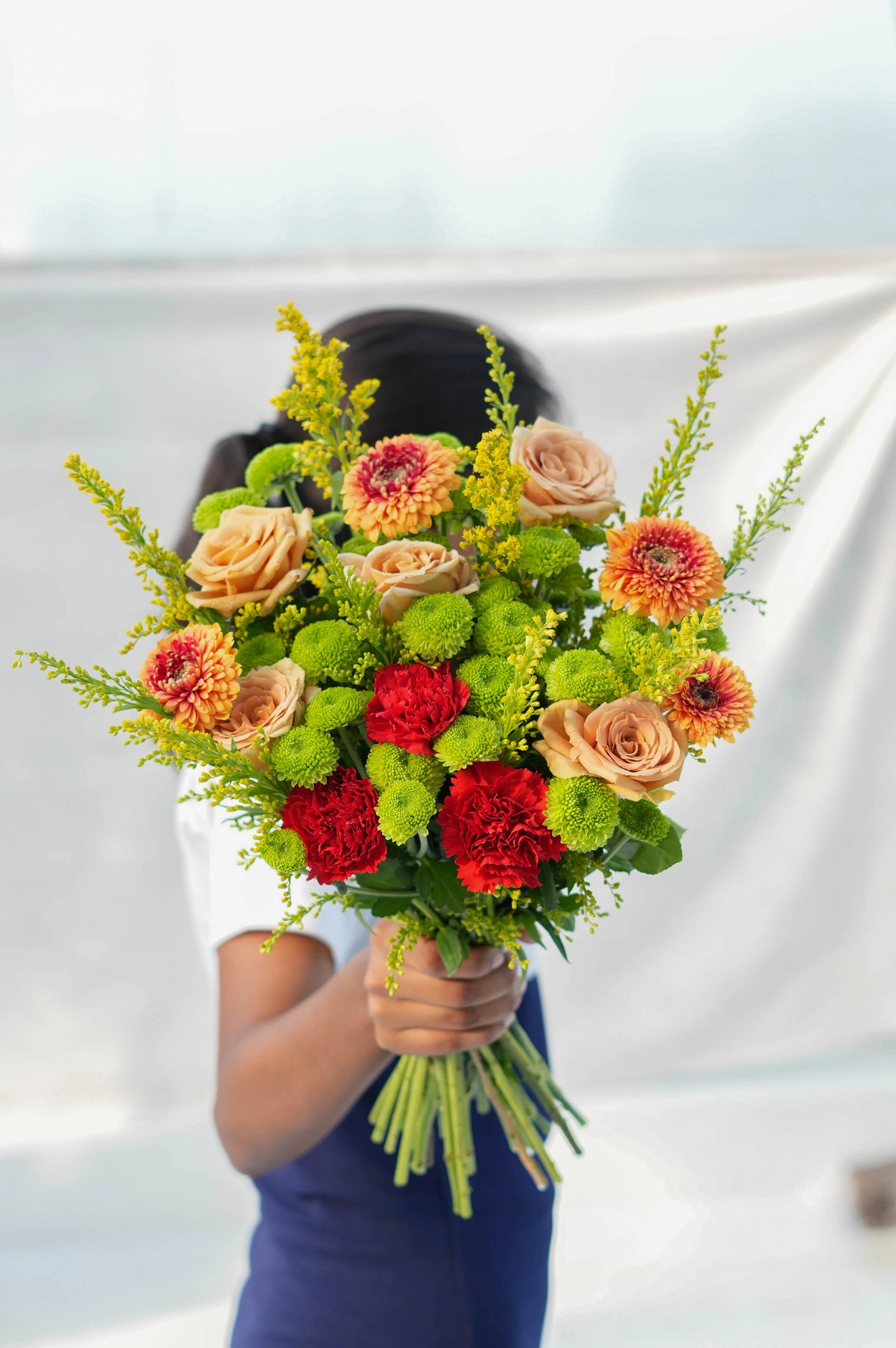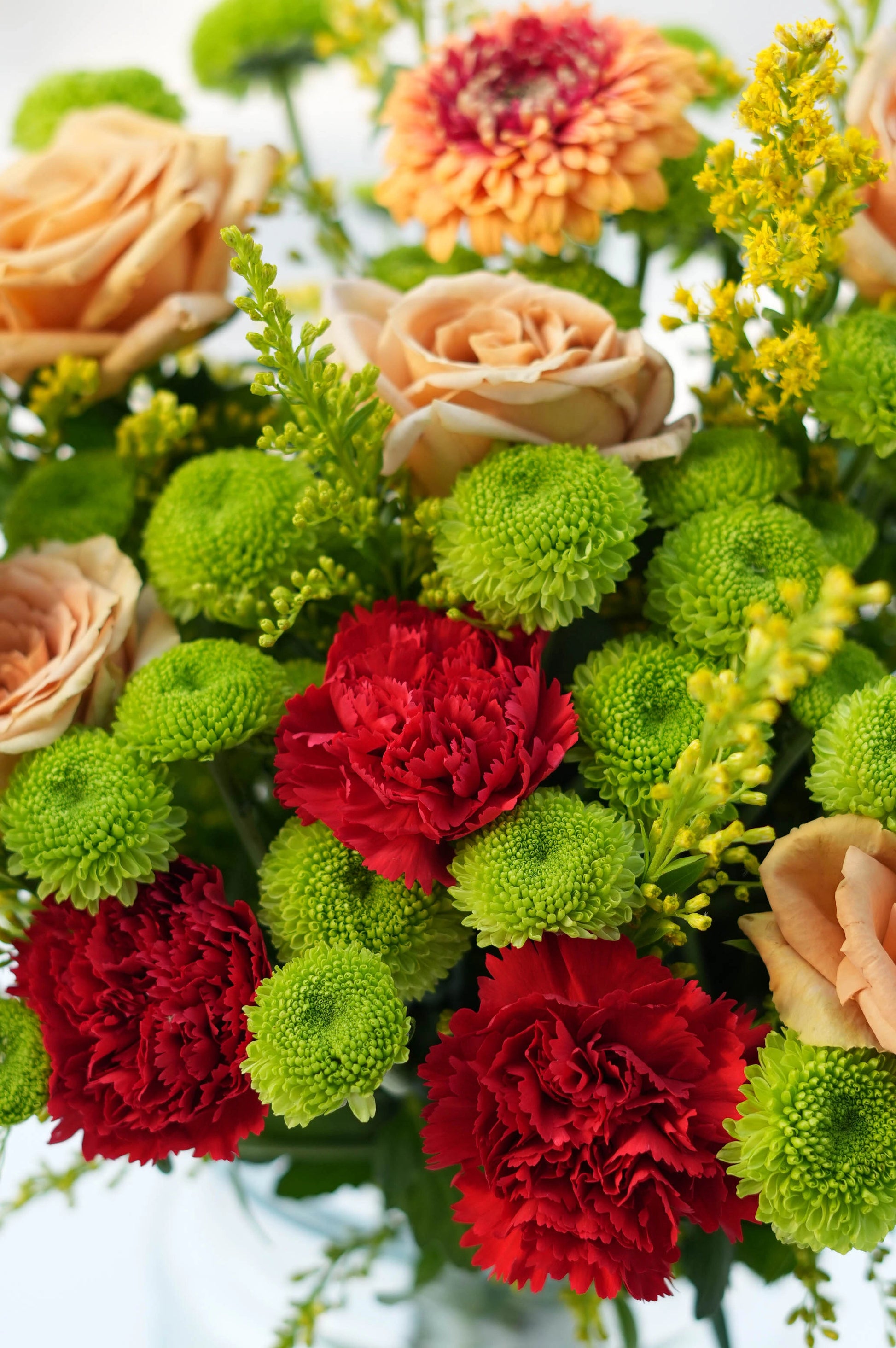 What's in your bouquet - Chrysanthemums, Roses, Calimero, and Golden Rod
