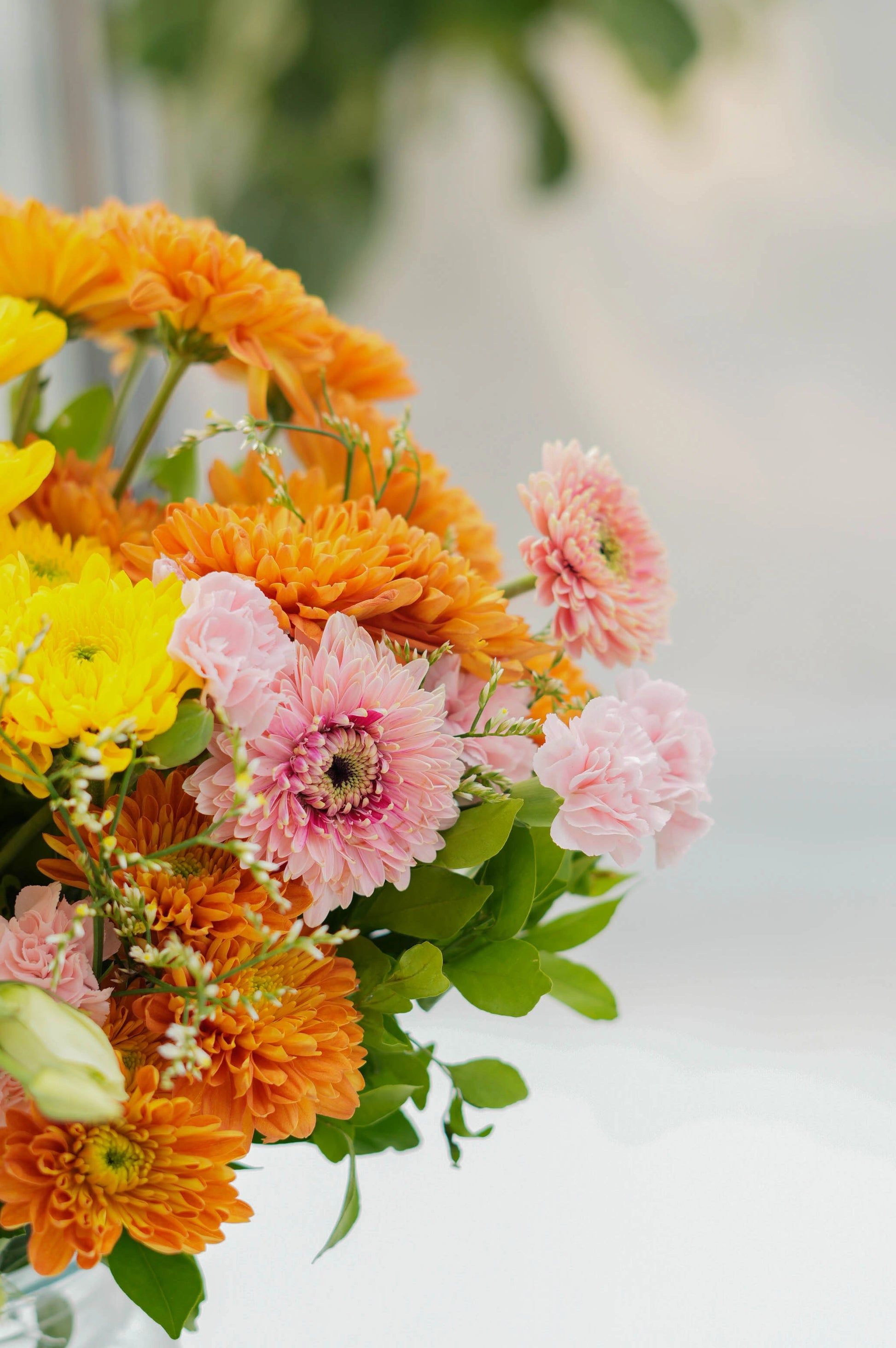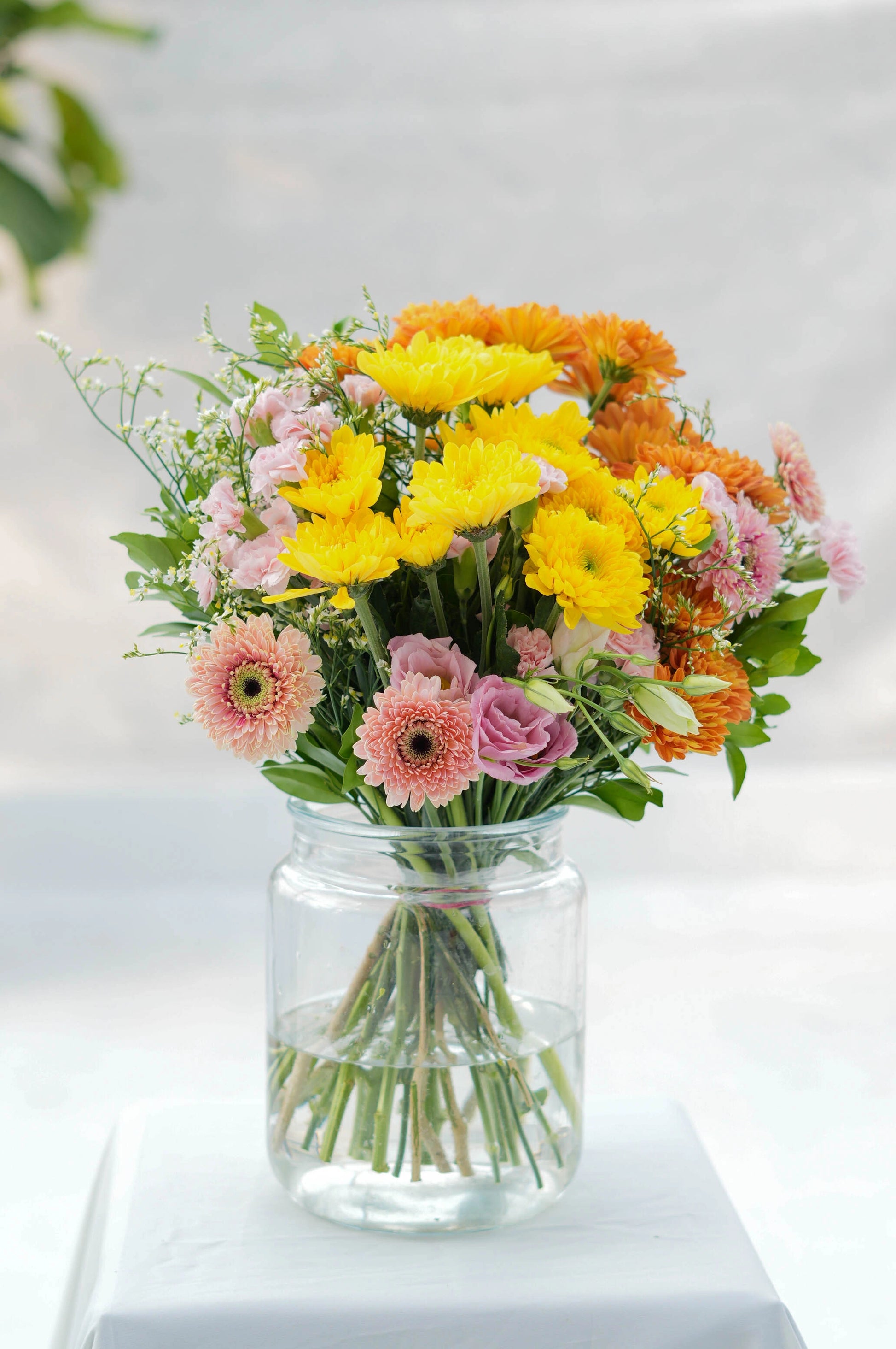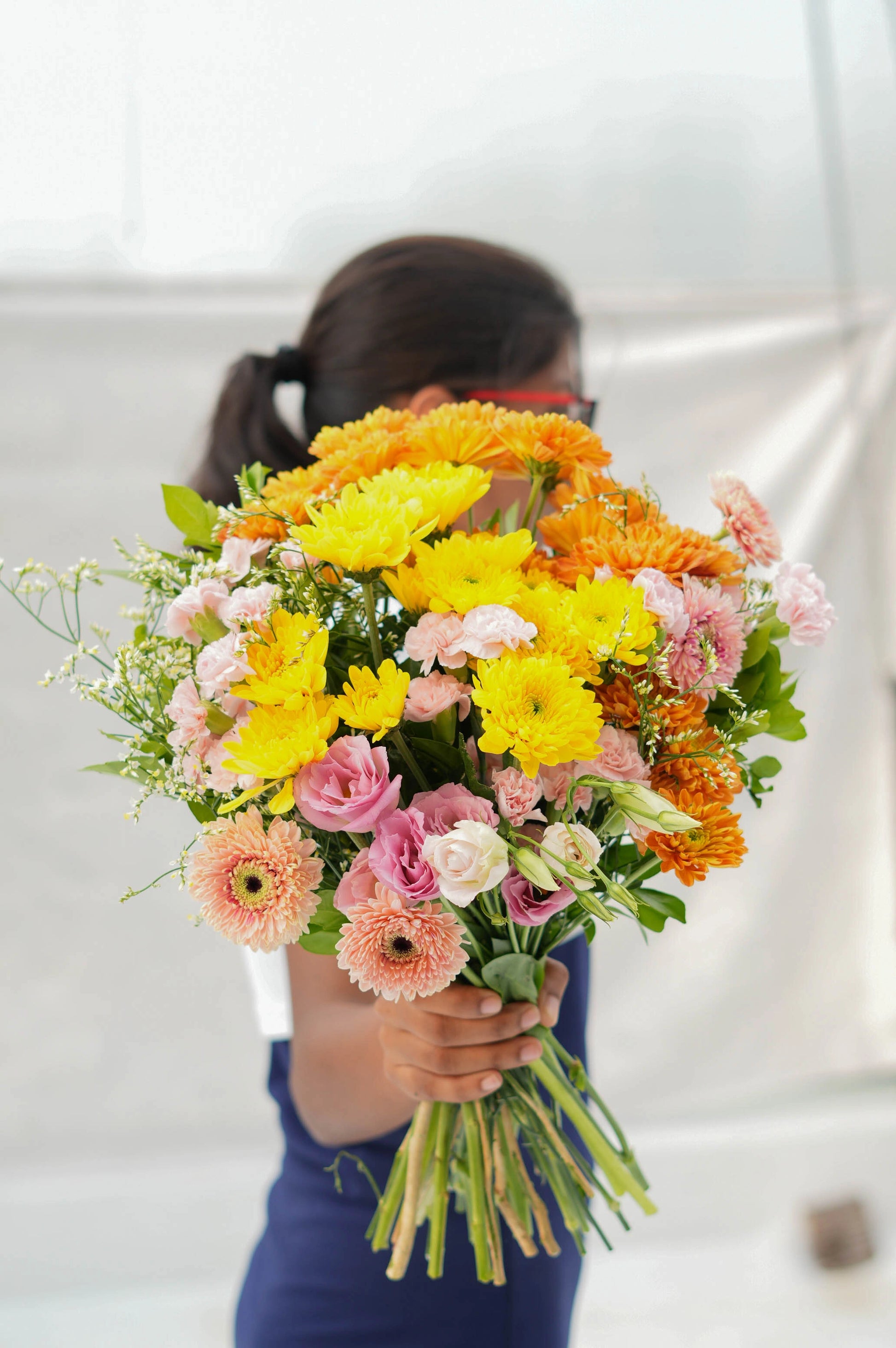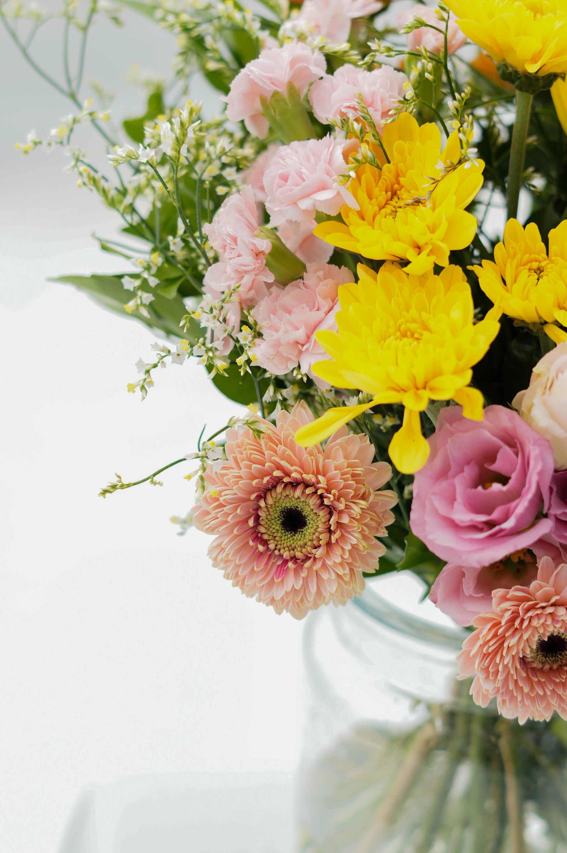 What's in your bouquet - Chrysanthemum, Mini Gerbera, Eustoma,Spray Carnation, White Limonium, and Kamini