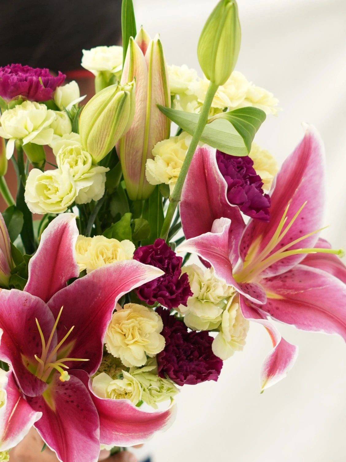 What's in your bouquet - Lilies Pink , Spray Carnation, and Carnation