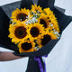 Ten cheerful sunflowers gathered with soft gypso - bright, happy, and bursting with sunny warmth. A simple, uplifting bunch made to light up any day with ease.